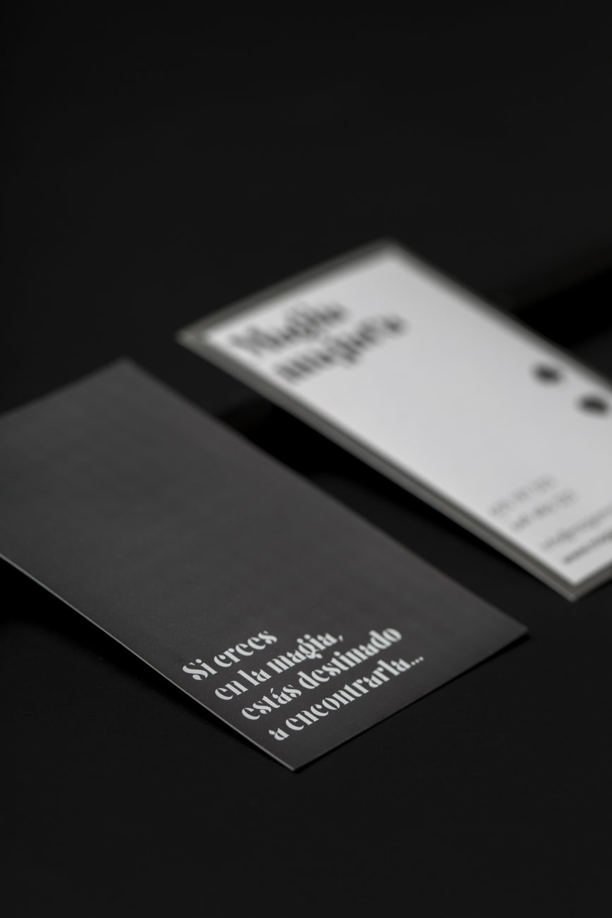 Modificando la tipografía Giaza Stencil y ocultando parte de sus trazos, desarrollamos su identidad visual basados en la idea de las desapariciones que los magos realizan en sus trucos más famosos.